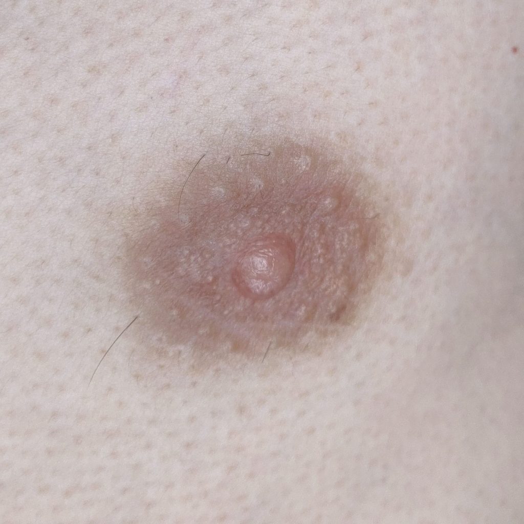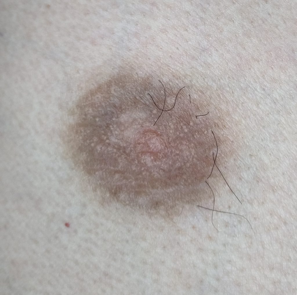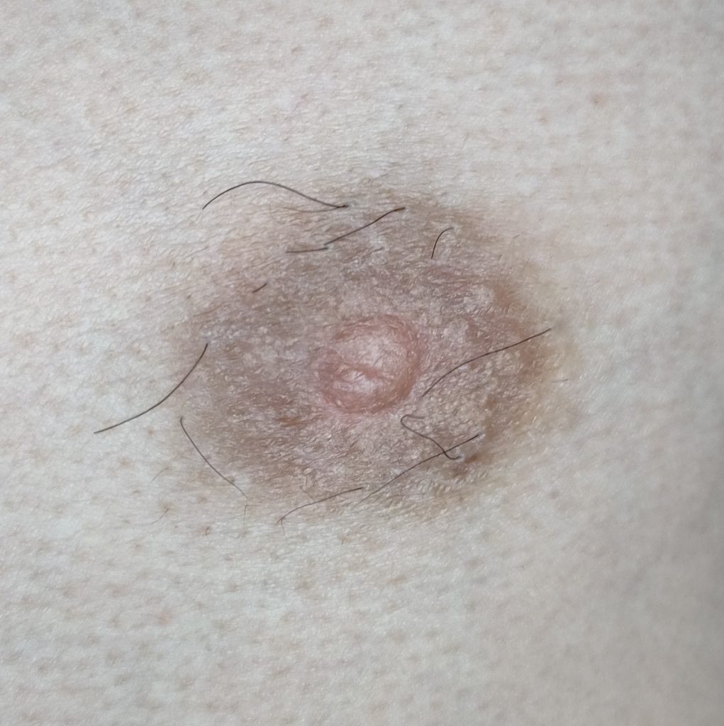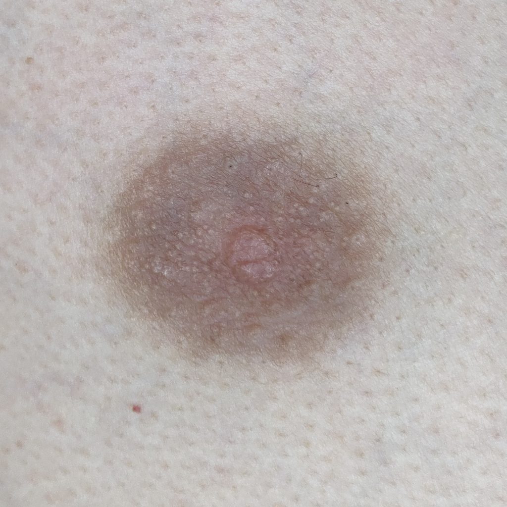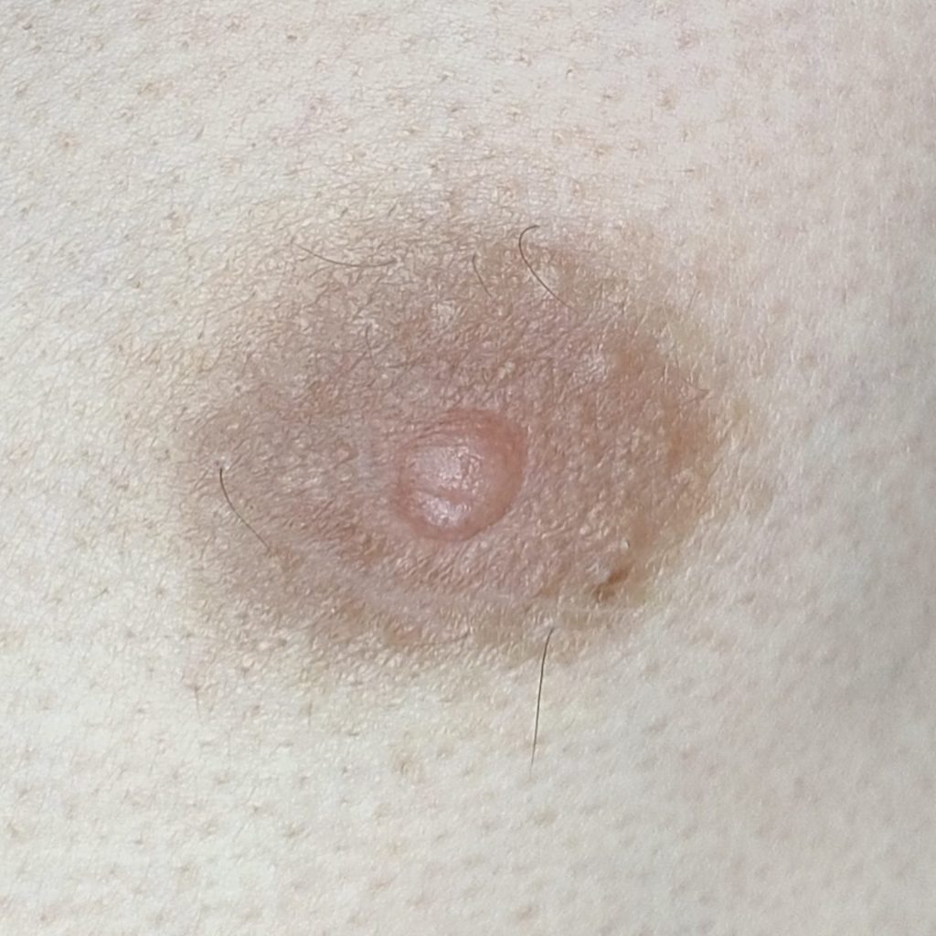私の場合、胸で気なる毛が生えているのは乳首部分なので、乳首部分の写真です。