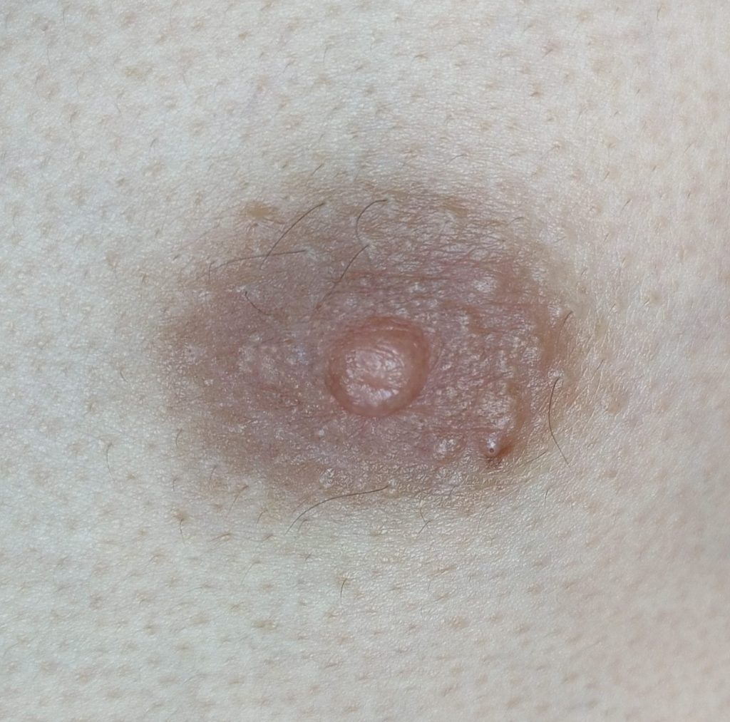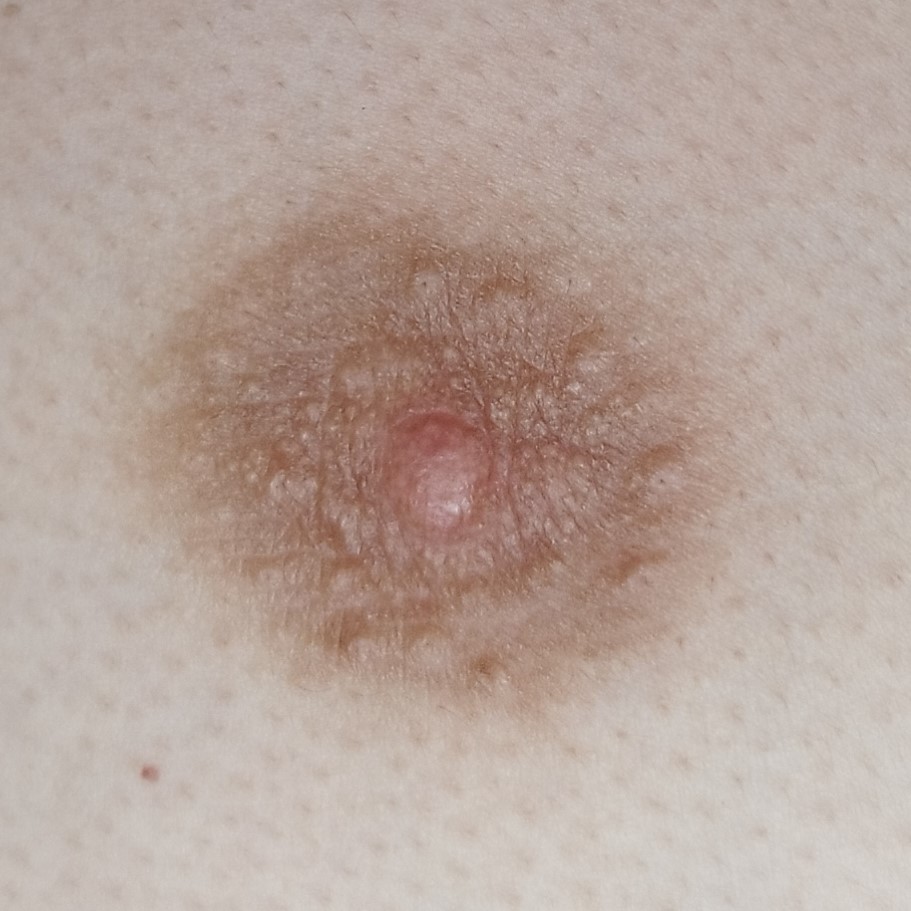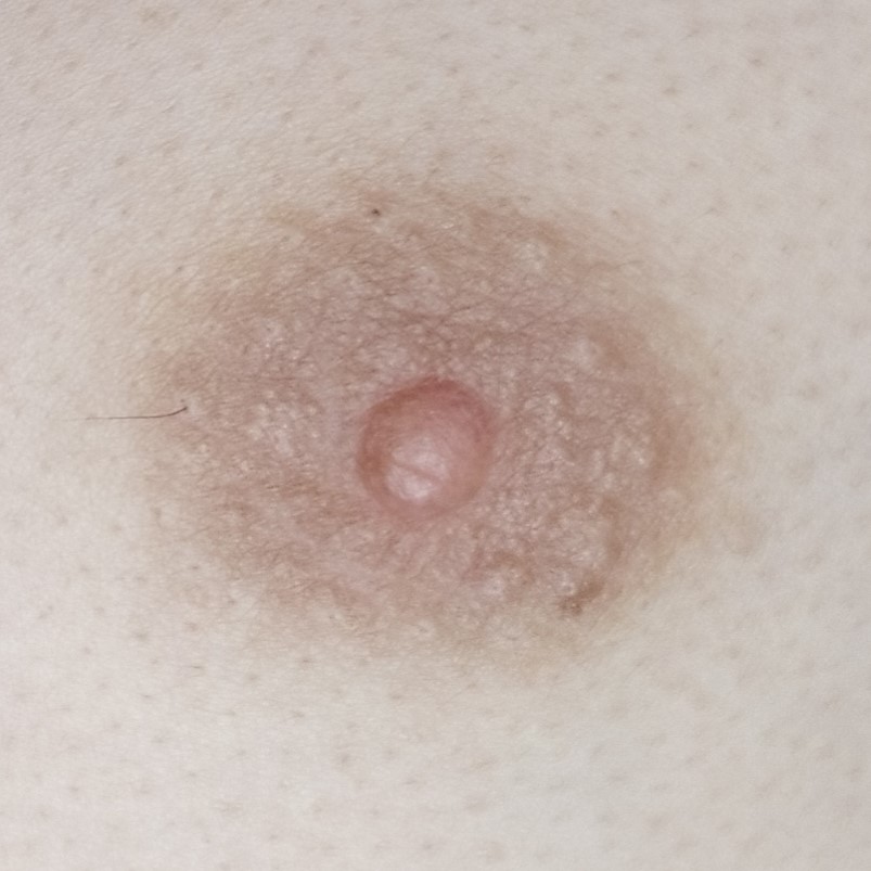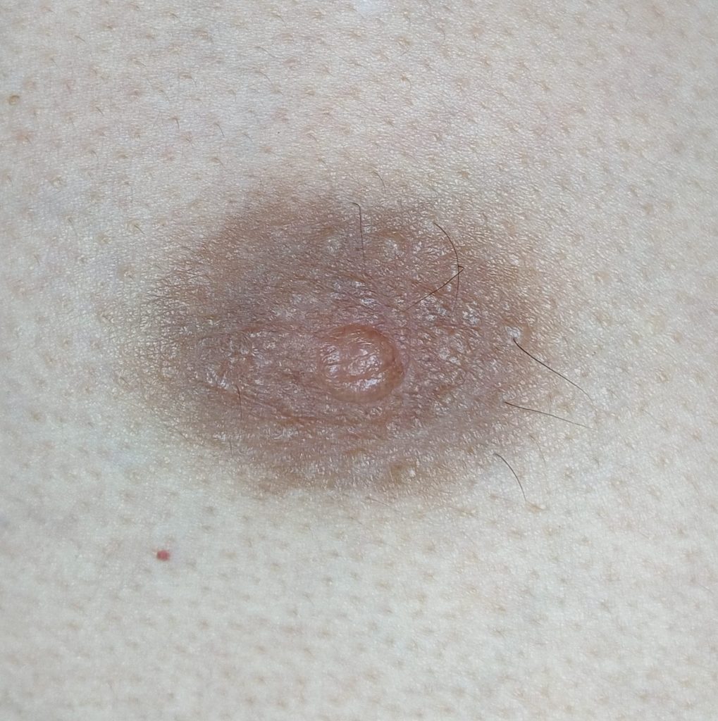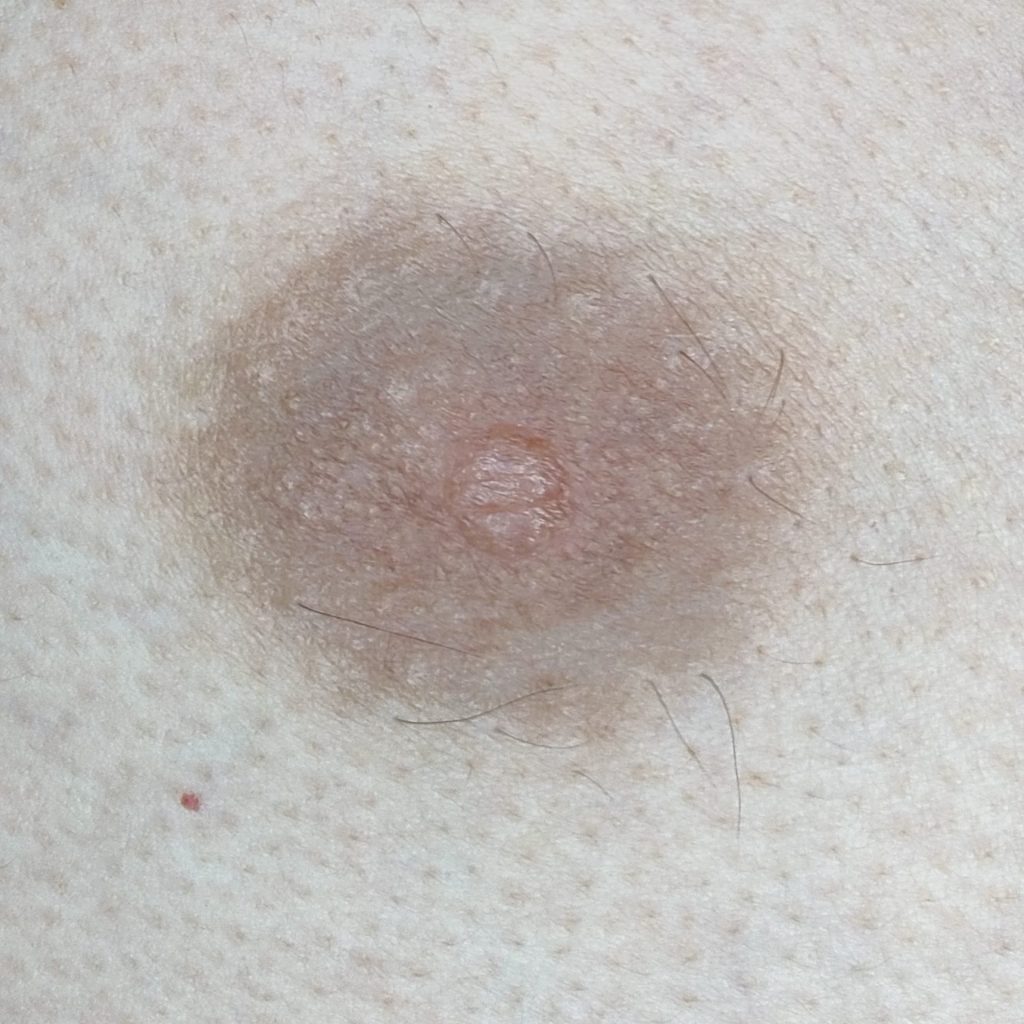 私の場合、胸で気なる毛が生えているのは乳首部分なので、乳首部分の写真です。